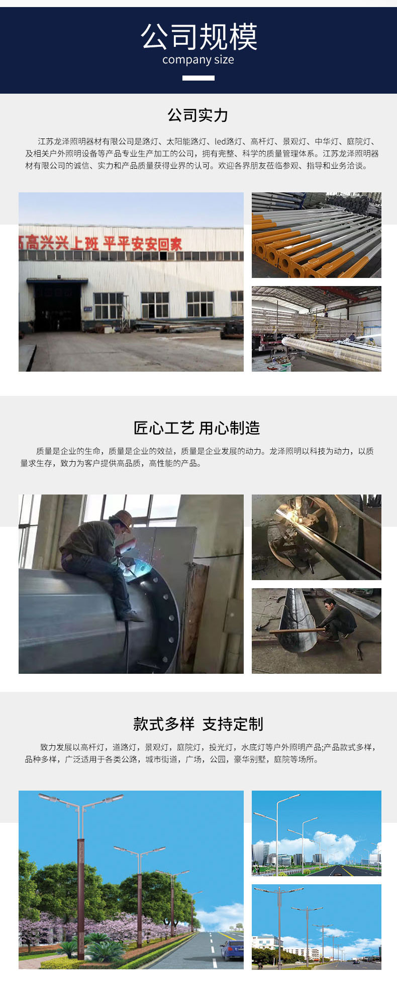 歡迎訪問江蘇龍澤照明-太陽能路燈-led市政路燈-高桿燈庭院燈公司網站,產品優良,價格公道,歡迎選購!